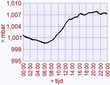 - Maximum waarde luchtdruk voor deze dag het vorige jaar: 1007,9 (20:15)
