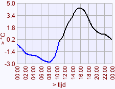 - Minimum waarde temperatuur voor deze dag het vorige jaar: -2,8 (07:40)